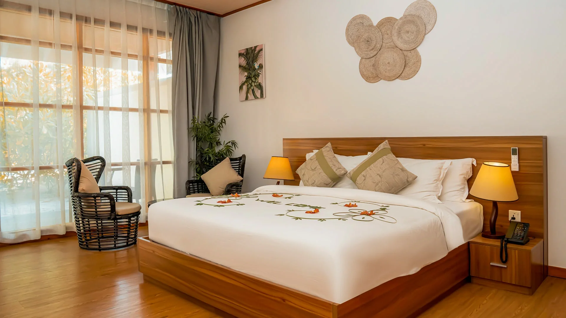 Placed near the island shore, offering a view of the ocean, are our 45 Beach Villas of 75 sqm. Walk out of your room right onto the white sandy beach of Brennia and enjoy the dazzling view.